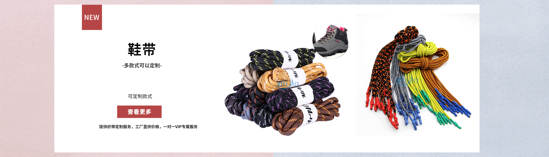 十多年来,公司不断引进世界先进的生产设备,健全的现代化管理体系,拥有高端的管理团队以及科研人员。公司具有强大的研发和生产能力,得以稳定快速的发展。在同行业,我们发展领先,锐意进取、积极创新。本公司主要从事 研发、生产、销售各种织带、鞋带、松紧带、电脑提花带、圆(扁)绳、粘扣带、 飞机(汽车)安全带,产品运用范围广,在鞋类、帽类、服装类、家私类、运动器材,医疗,航空,海洋安全防护、电子产品等等;得以广泛的运用。产品远销国外120多个国家涉及世界五大洲,全面配合世界市场的需求,公司精心呵护我们的每一位新、老客户,热忱期望与各界朋友携手合作,共创辉煌!
